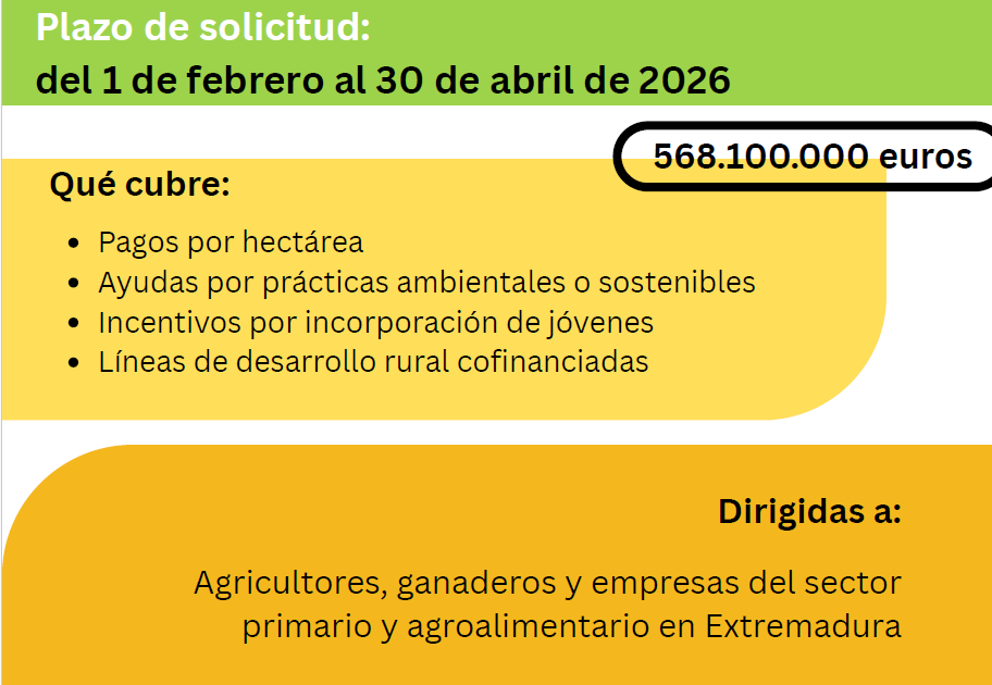 Convocatoria abierta en Andalucía para la solicitud de las ayudas PAC de 2026 23/02/2026 La Junta de Andalucía ha abierto el periodo de solicitud de las ayudas de la Política Agraria Común (PAC) para 2026, que están destinadas a agricultores y ganaderos de la región con el objetivo de garantizar la viabilidad económica de las […]